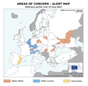 Según la edición de junio del boletín MARS del Centro Común de Investigación (JRC) de la Comisión Europa sobre seguimiento de cultivos en Europa , las previsiones de rendimiento para casi todos los cultivos extensivos (cereales, oleaginosas…), se revisaron a la baja en toda la Unión Europea, pero aun así se mantienen cerca de la media de cinco años.