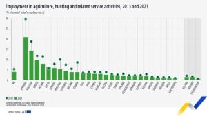 Por otro lado, la oficina europea recogió que, aunque el número de trabajadores haya aumentado en algunos Estados miembros, la proporción de empleo total correspondiente al sector agrícola disminuyó en todos los países de la UE.