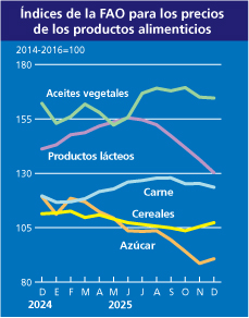 El promedio anual del índice de precios de alimentos de la FAO cierra 2025 al alza