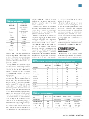 primeras etapas de lactación. metionina y lisina, midiendo este conte-