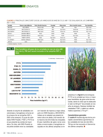 el que presenta las plantas de mayor El peso hectolítrico del grano de las varie- las variedades de maíz de ciclo 600 y
